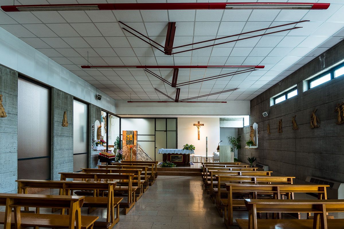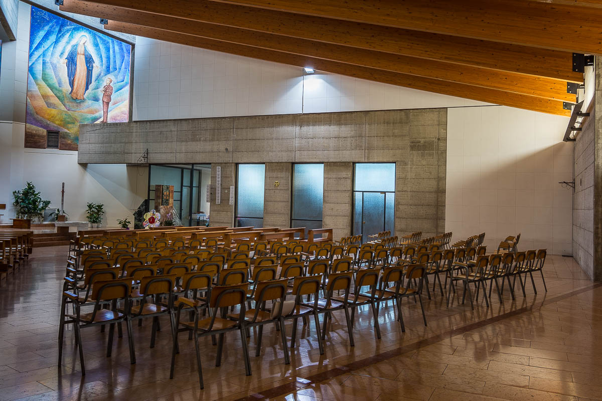 Nella cappella laterale invece siamo intervenuti con pannelli a parte ed anche a controsoffitto, migliorando nel contempo l’aspetto dell’isolamento termico del locale.